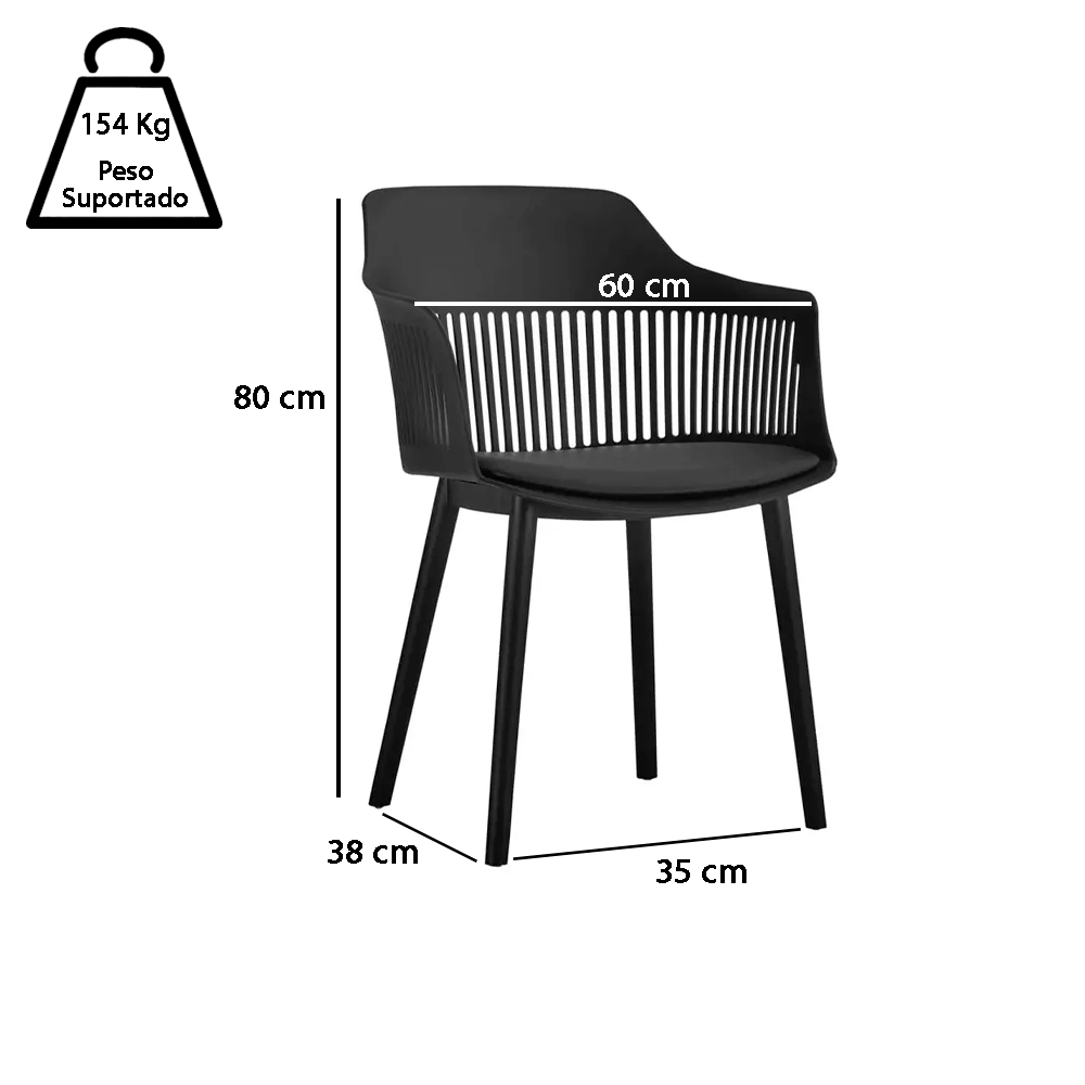 | Material | Polipropileno, Madeira e Couro Tipo PU. |