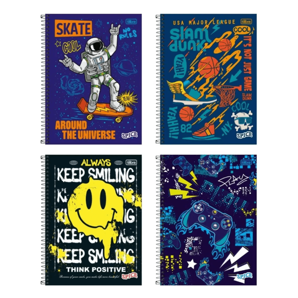 Caderno Capa Dura Masculino Spice 12 Matérias Tilibra 349381