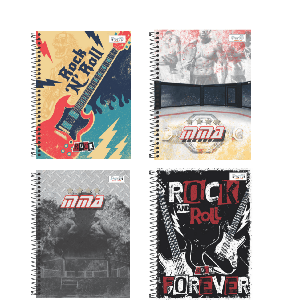 Caderno Universitário Rock 10 Matérias 140 Folhos Perfil Cadernos
