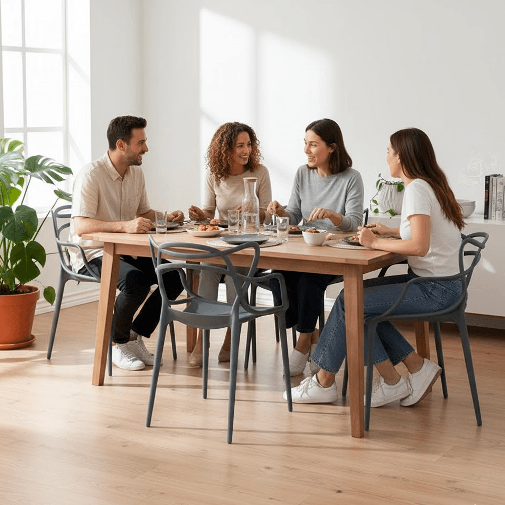 Facilidade de Limpeza e Manutenção: O polipropileno é um material de fácil limpeza, resistente a manchas e fácil de manter. Basta um pano úmido para que a cadeira se mantenha sempre impecável;
