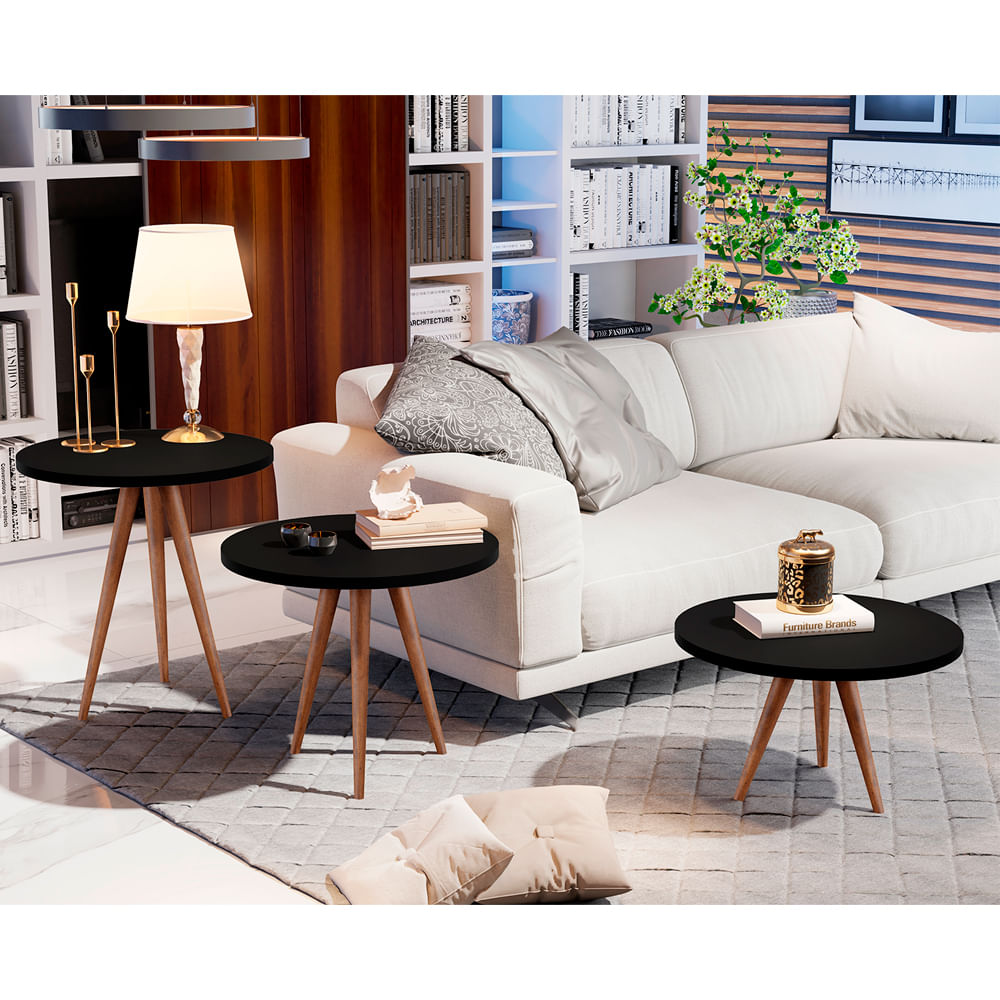 Conjunto Mesas de Canto em MDF 2 Peças Preto Mozaic 28cm