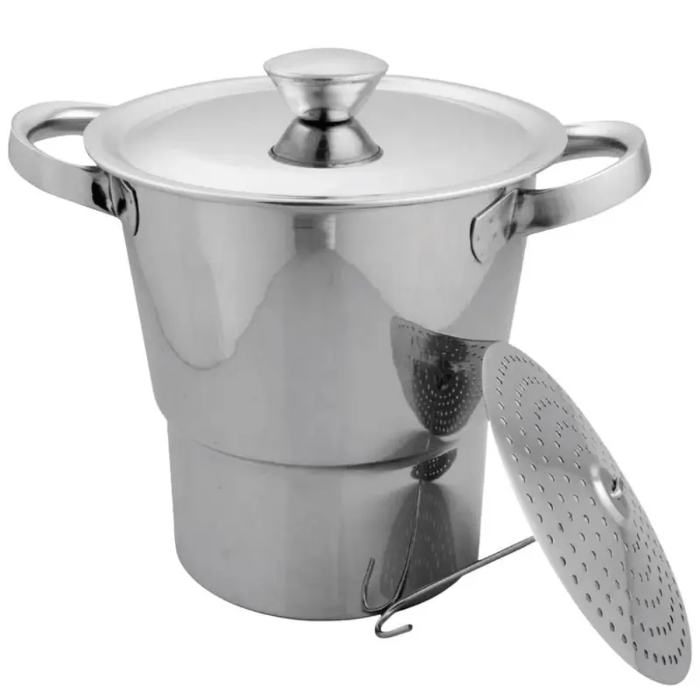 Produzida em aço inoxidável, a cuscuzeira oferece alta resistência à corrosão, durabilidade superior e excelente acabamento. O material proporciona distribuição uniforme do calor, garantindo cozimento mais rápido e homogêneo, além de contribuir para a economia de gás ou energia durante o preparo.