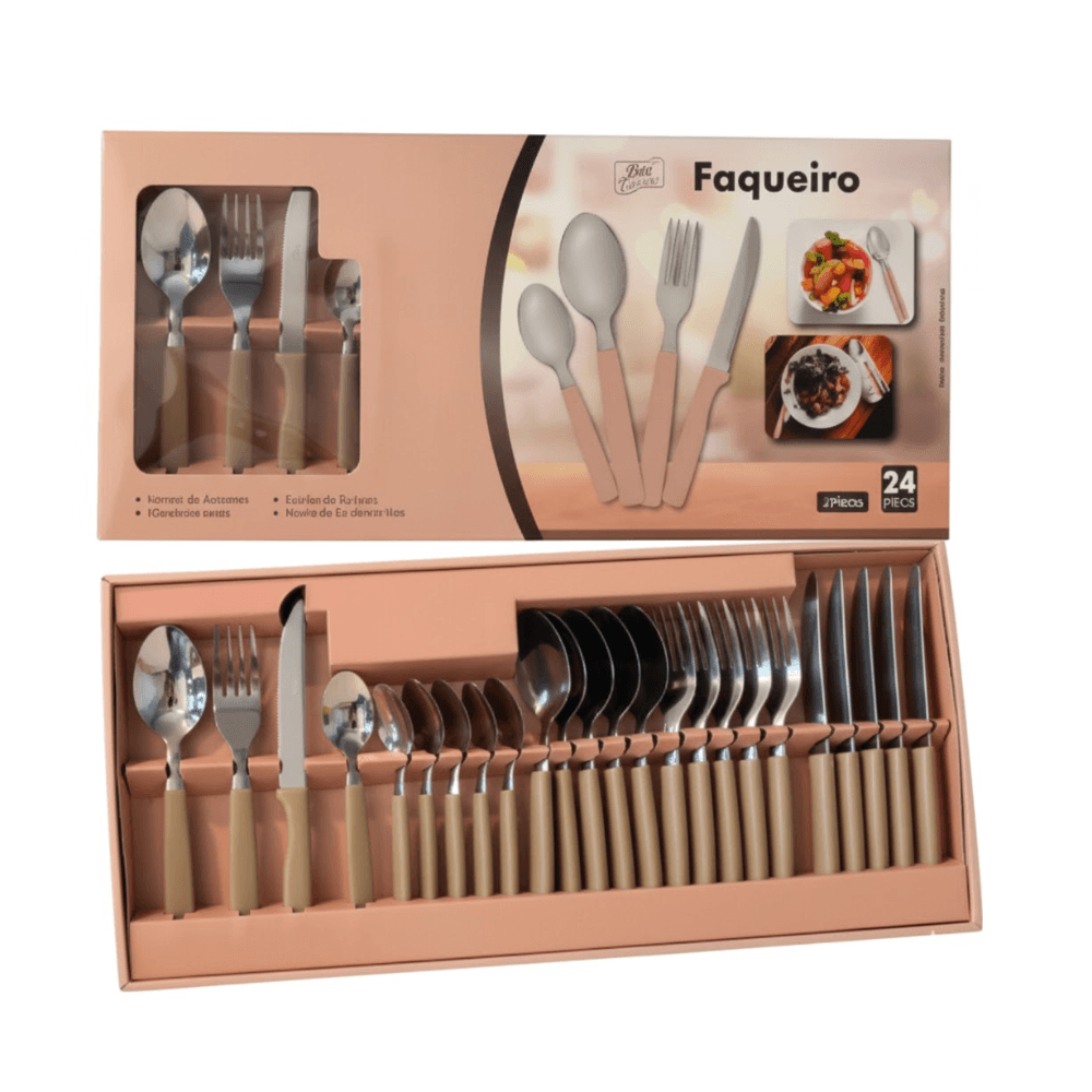 Faqueiro Inox Viena Com Cabo Plástico Nude 24 Peças Útil Bazar