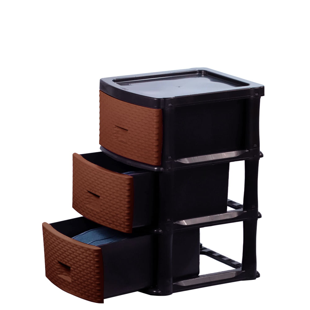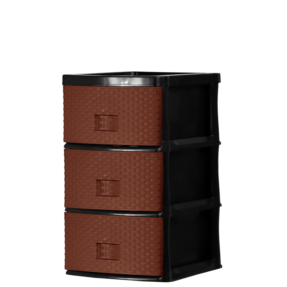 Gaveteiro Plástico Rattan 3 Gavetas Preto com Marrom Lummar 1011.3