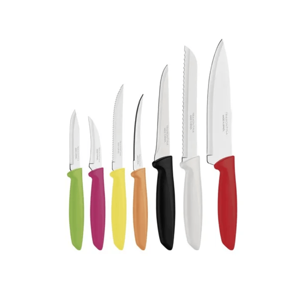 | Descrição Atacado | Jogo de Facas Tramontina Plenus com 7 peças em aço inox e cabos de polipropileno coloridos. Produto leve, resistente e funcional, ideal para vendas em atacado, varejo, kits domésticos e reposição de estoque. |