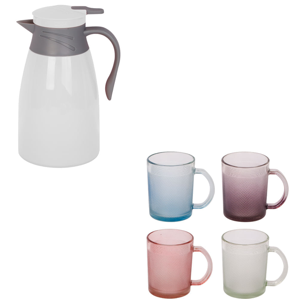 | Componentes | 1 Garrafa Térmica e 4 Canecas |