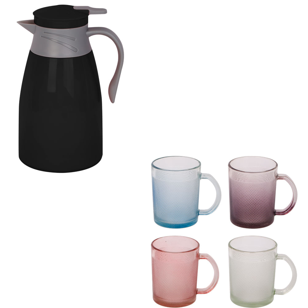 Jogo Garrafa Térmica Preta 1L com 4 Canecas RF4530P