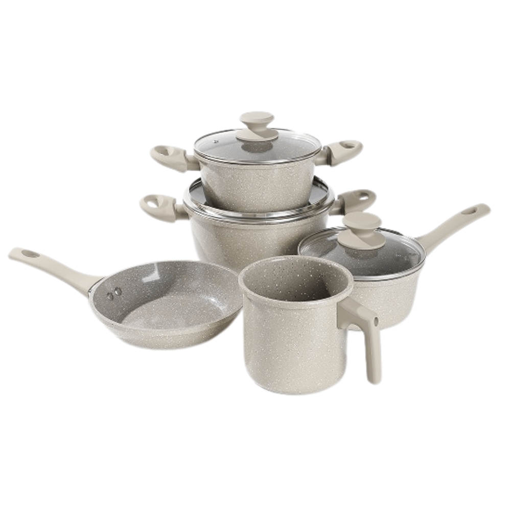 Jogo Panelas Cerâmica Classic Marbo Beje 5 Peças Útil Bazar JASM0011
