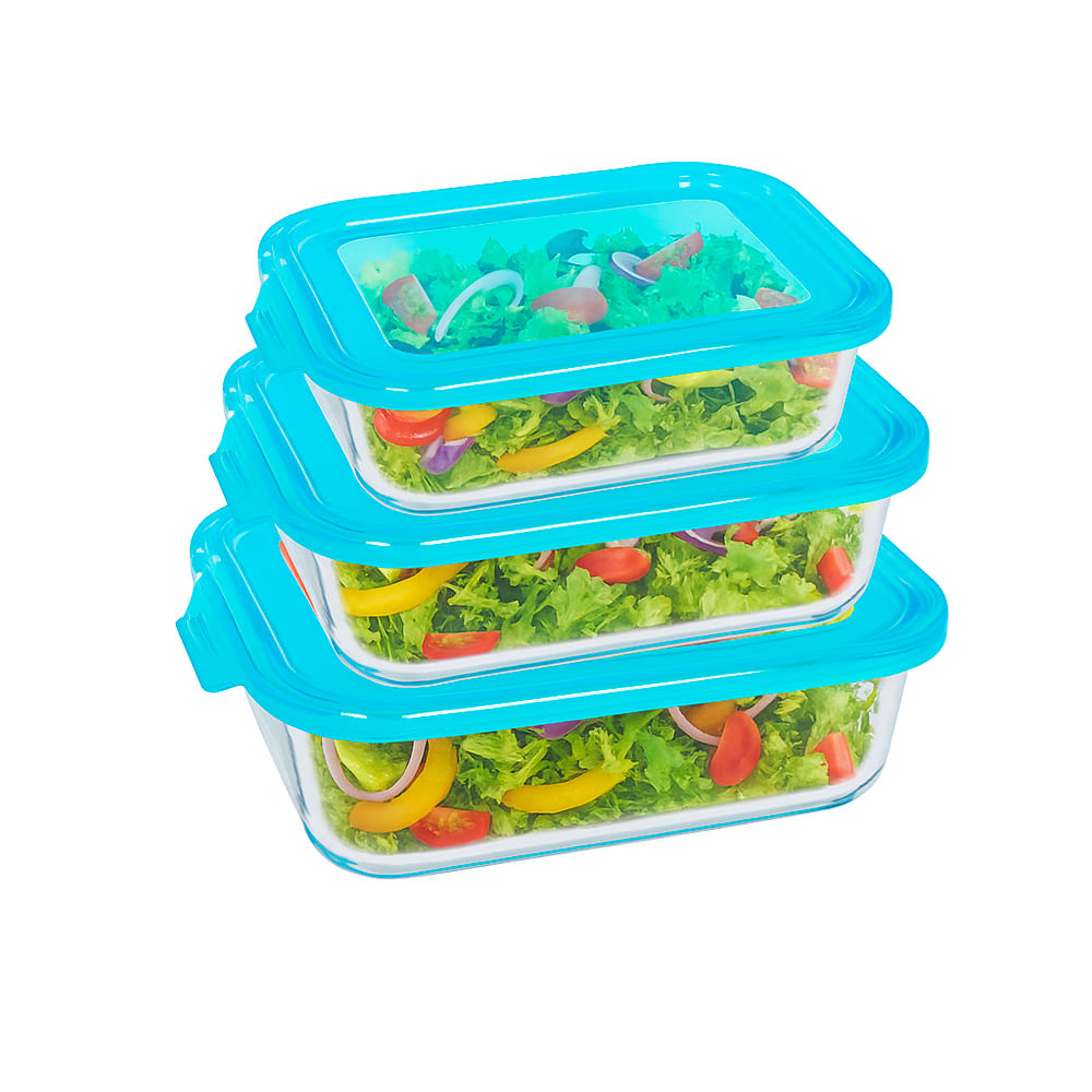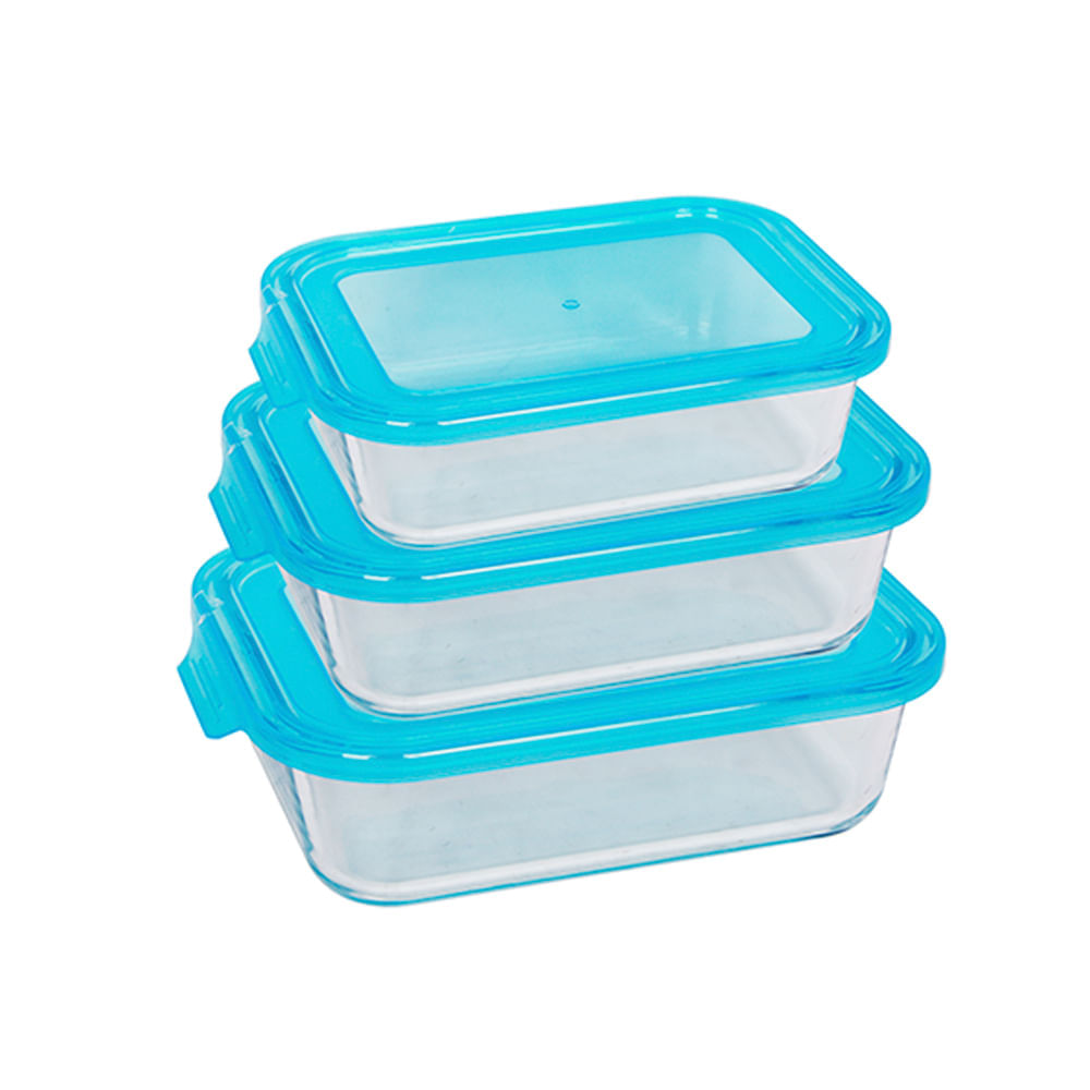 Jogo Potes Herméticos Borossilicato com Tampa Azul 3 Peças Útil Bazar