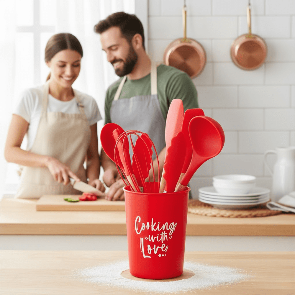 Cada utensílio é feito de silicone de alta qualidade, garantindo durabilidade, resistência ao calor e facilidade de limpeza. O silicone é um material seguro para uso alimentar e não reage com alimentos ou líquidos, garantindo a pureza dos seus pratos.