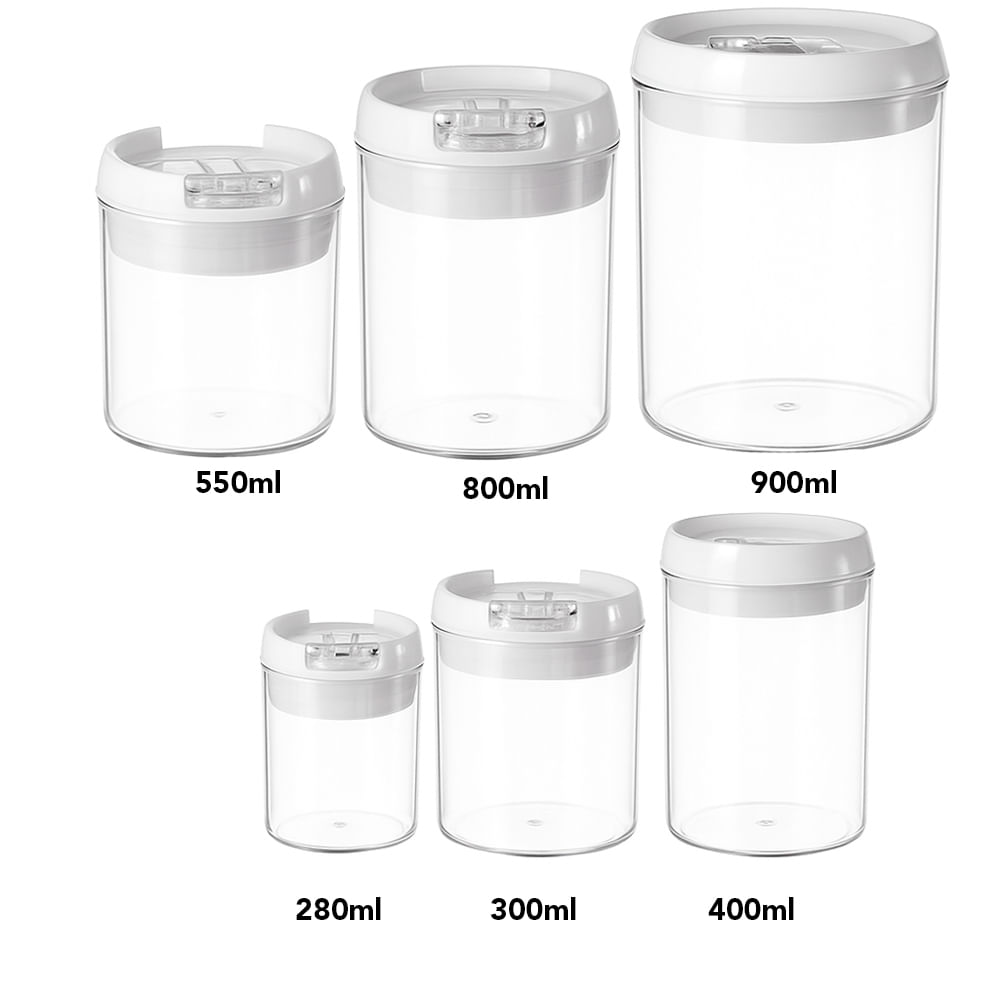 Kit 6 Potes Herméticos Acrílico Redondo Útil Bazar KIT00000623