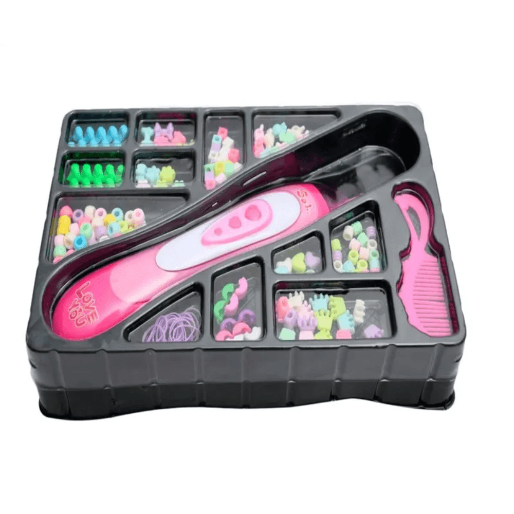 O conjunto conta com 132 peças, incluindo uma máquina para pentear e trançar cabelos, além de miçangas coloridas sortidas, permitindo criar diversos estilos de tranças e penteados. Produzida em Polimetilmetacrilato (PMMA), Acrilonitrila Butadieno Estireno (ABS) e Poliestireno (PS), apresenta excelente resistência, acabamento seguro e durabilidade adequada ao uso infantil.