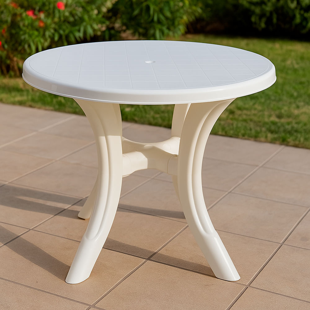 Mesa Plástica Ibiza Redonda Branca 80cm Mozaic – RF4223BR