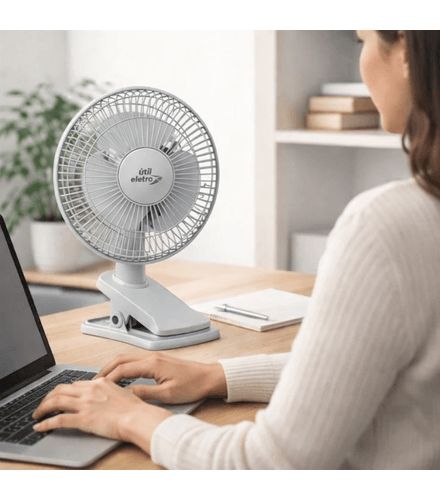 O acabamento na cor cinza confere um visual moderno e discreto, facilitando a integração com diferentes estilos de ambientes. O mini ventilador proporciona fluxo de ar constante e direcionado, auxiliando na circulação do ar com baixo consumo de energia.