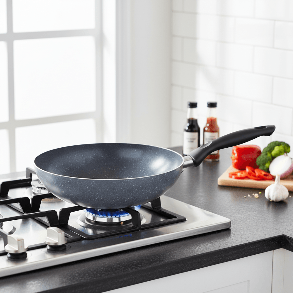 Com 30 cm de diâmetro, a panela oferece ótima área interna para preparo de porções médias e grandes, sendo indicada para salteados, refogados, grelhados leves, massas e receitas orientais. Seu acabamento na cor cinza confere um visual moderno e sofisticado, integrando-se facilmente a diferentes estilos de cozinha.